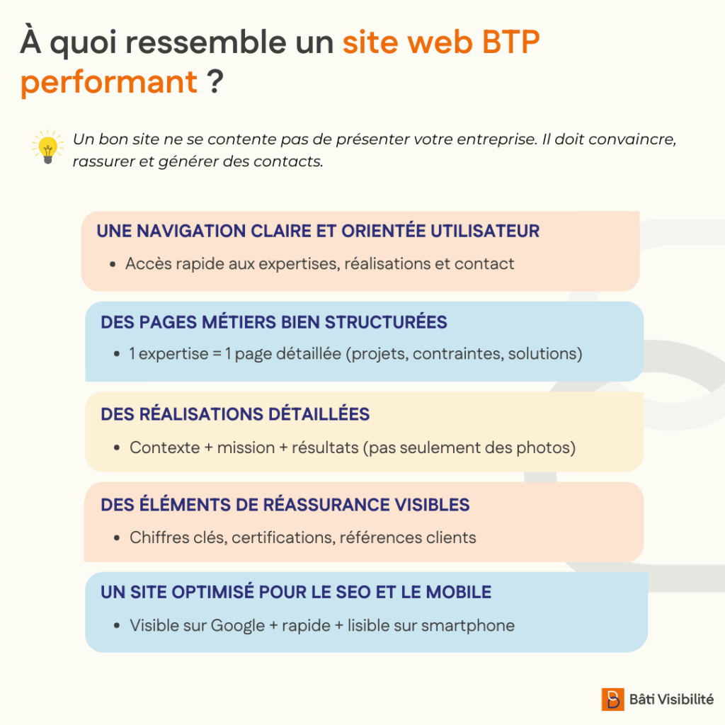 Une grande partie des visites se fait aujourd’hui sur smartphone. Dans le BTP, cette réalité est encore plus forte car les utilisateurs consultent souvent les sites entre deux rendez-vous, en déplacement ou sur chantier. Si le site est lent ou peu lisible, il peut perdre rapidement l’attention du visiteur.