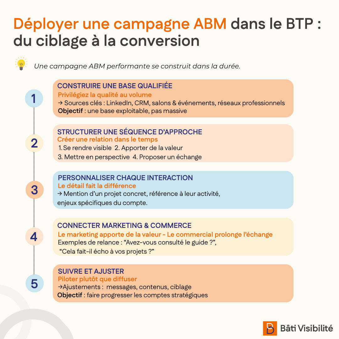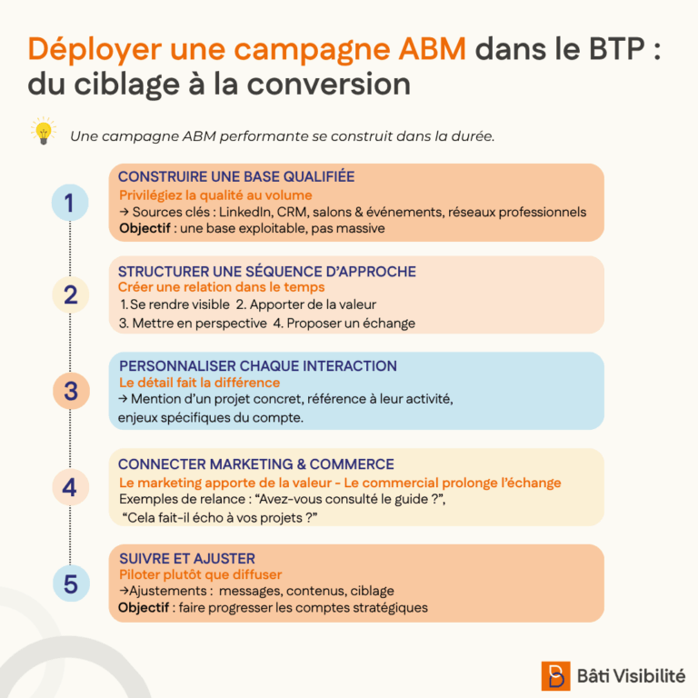 Avec cette approche, l’ABM devient un véritable levier de développement commercial dans le BTP. Non pas en multipliant les sollicitations, mais en structurant des interactions ciblées, utiles et progressives avec les bons interlocuteurs.